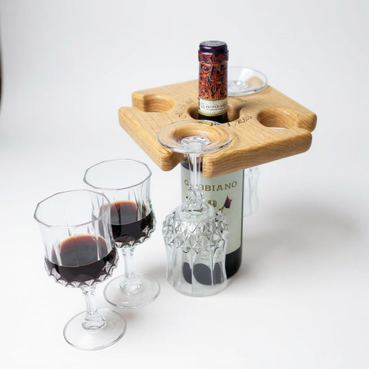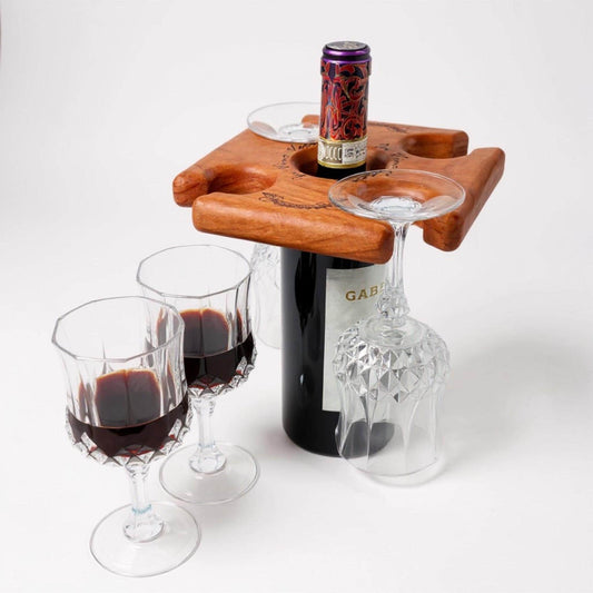 Personalized Wooden Wine Glass Caddy - Handmade Hardwood Server