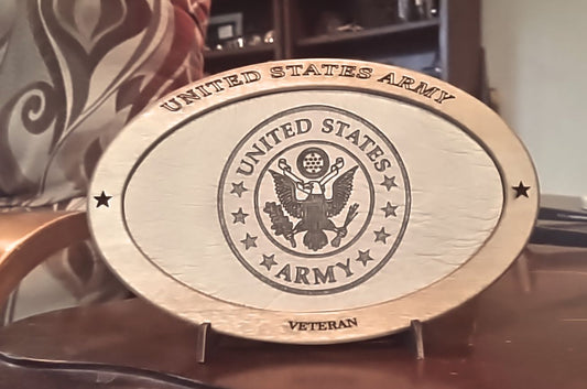US Army Veteran Service Recognition Plaque, Engraved Leather,Hand-Finished,Wood Plaque,Military Gift,Desk Display,Wood Carving, Desk Display